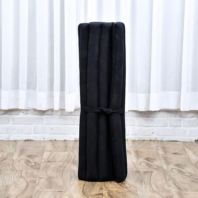 - Contents: The yoga meditation mat measures 28 x 28 x 2 inches (WxDxH) when spread out. After use, it can be rolled-up for storage and transport. The rolled-up mattress measures 28 x 8 x 8 inches (WxDxH)