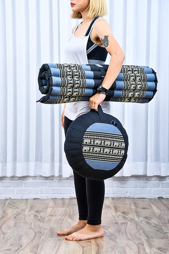 - Material: The Zabuton cushion for adults is filled with kapok. The stable and breathable fiber used for the yoga mat allows for a pleasant and comfortable seating position