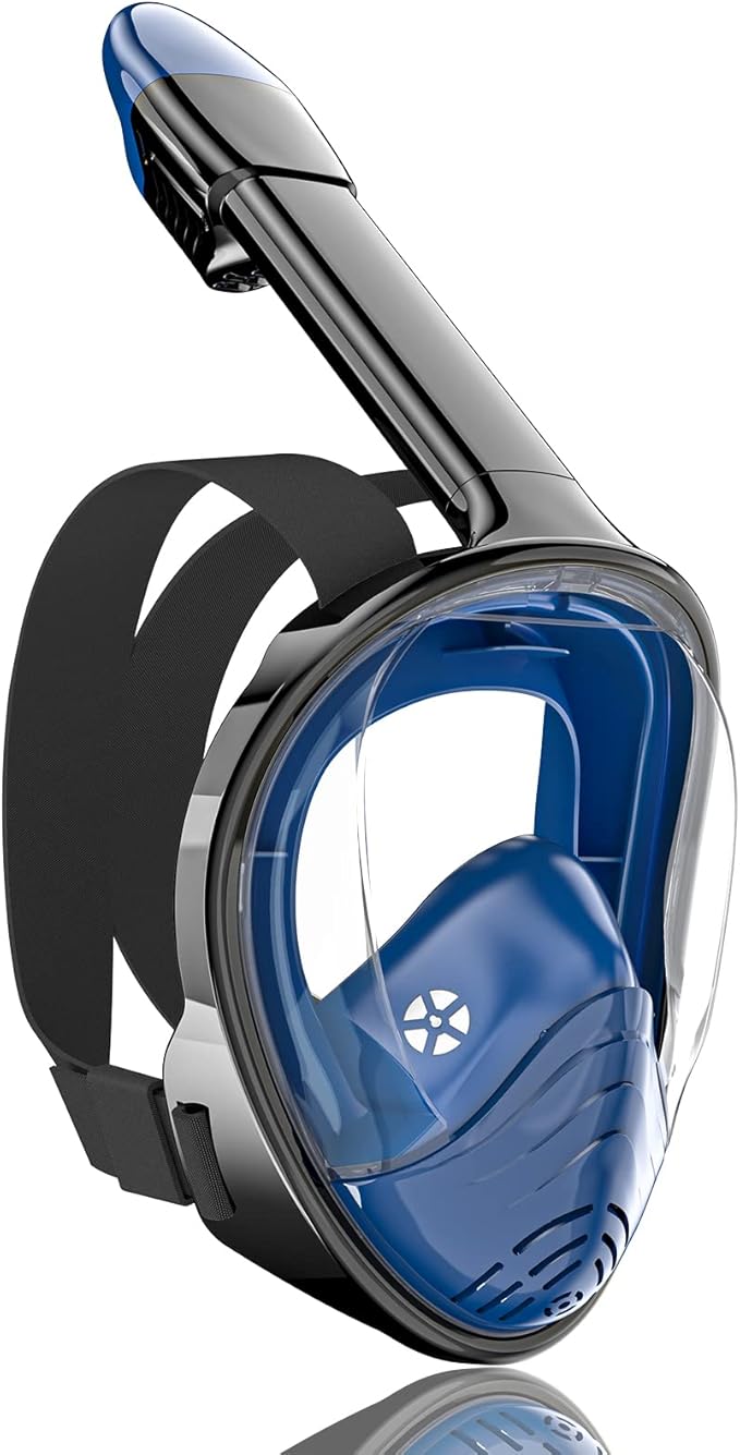 - 【Full Face Snorkel Mask】 Be different from other traditional snorkle gear, our snorkeling mask provides you a 180 degree field of vision, and offers superior views over a standard diving mask and opens up a new world of underwater adventure, full face design allows you to breath comfortably through nose and mouth during snorkeling.
