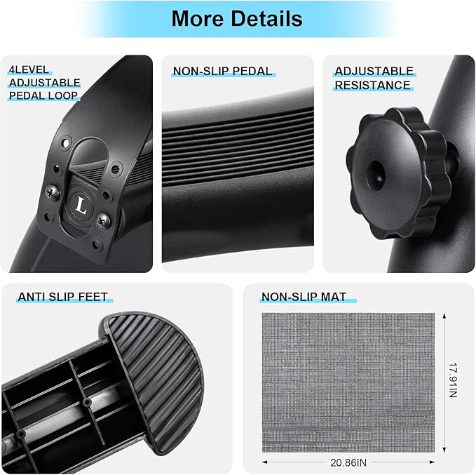 - 【Home Pedal Exerciser】: The mini exercise bike can be used to stimulate blood circulation, improve muscle strength and coordination. It is specially designed to exercise arms and legs. The 4 anti-slip rubber pads prevent sliding and protect the surface during training.
