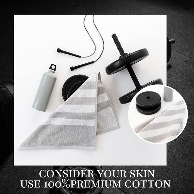 Luzia Striped Workout Towel for Sweat (Pack of 2) - Premium Quality 100% Turkish Cotton - Lightweight and Super Absorbent for Exercise, Sports, Workout, Fitness, Gym, Yoga, Running (Gray)