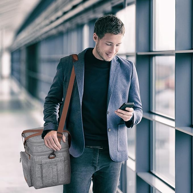 Maelstrom 23L Insulated Lunch Box For Men Women,Expandable Double Deck Lunch Cooler Bag,Lightweight Leakproof Tote Bag With Side Tissue Pocket,Gray