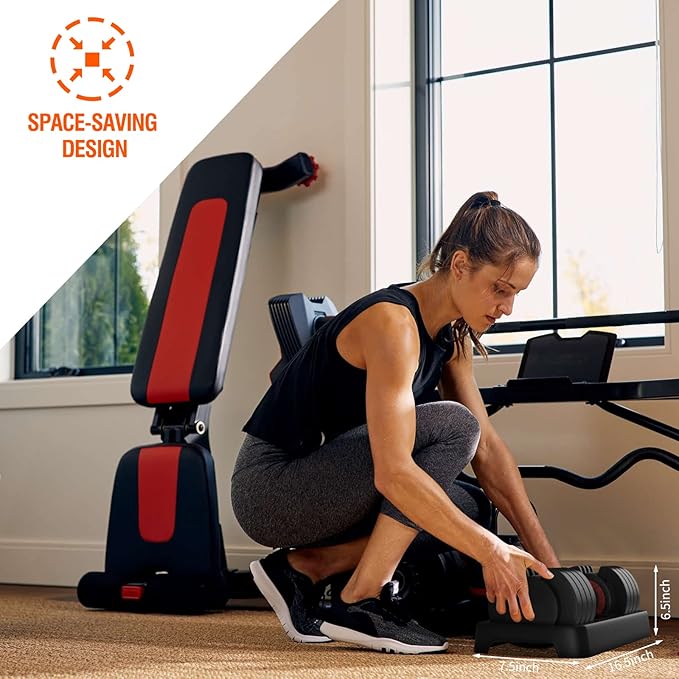 - 🥇【Save Money & Space】It is great for your upper body workouts, which helps tone and sculpt your arms, shoulders and also strengthen your muscles. The dumbbell also come with a tray for secure storage of your units, without devoting too much floor space, and keep your home gym well organized.
