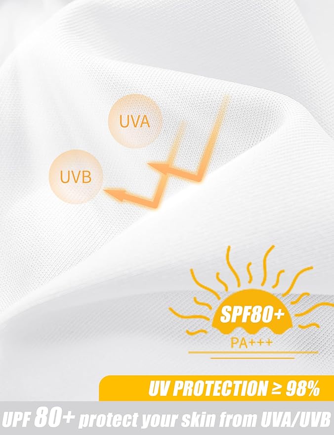 • UV Protection: The UPF 80+ fabric protects your skin from the harmful UVA/UVB rays, keeping you cool and active in the direct sunlight.