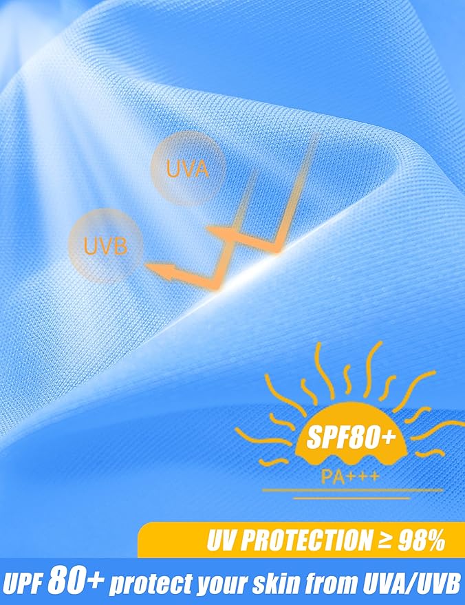 • UV Protection: The UPF 80+ fabric protects your skin from the harmful UVA/UVB rays, keeping you cool and active in the direct sunlight.