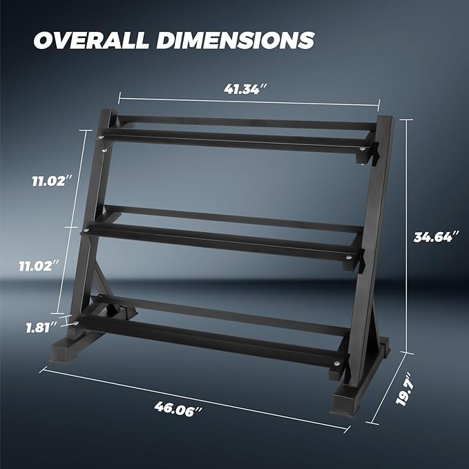 - Sets Included: This package contains a pair of 10LB, 15LB, 20LB, 25LB, 30LB, 35LB, 40LB, 45LB, 50LB, 55LB Dumbbells and 1 X 3-Tier Rack. Designed to store most sizes of dumbbells, the RITFIT Dumbbell Rack is ideal for your home gym setup to keep your training space organized.
