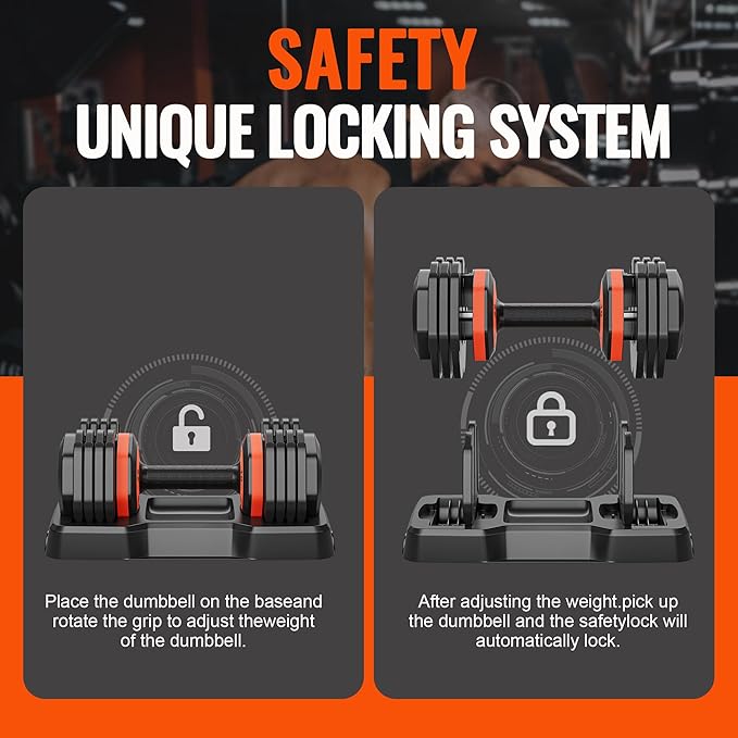 VEICK 25/55 lbs Adjustable Dumbbell with Anti-Slip Turning Handle, Fast Adjust Weight for Men Women, Exercise Equipment with Tray for Home Gym Full Body Workout Fitness
