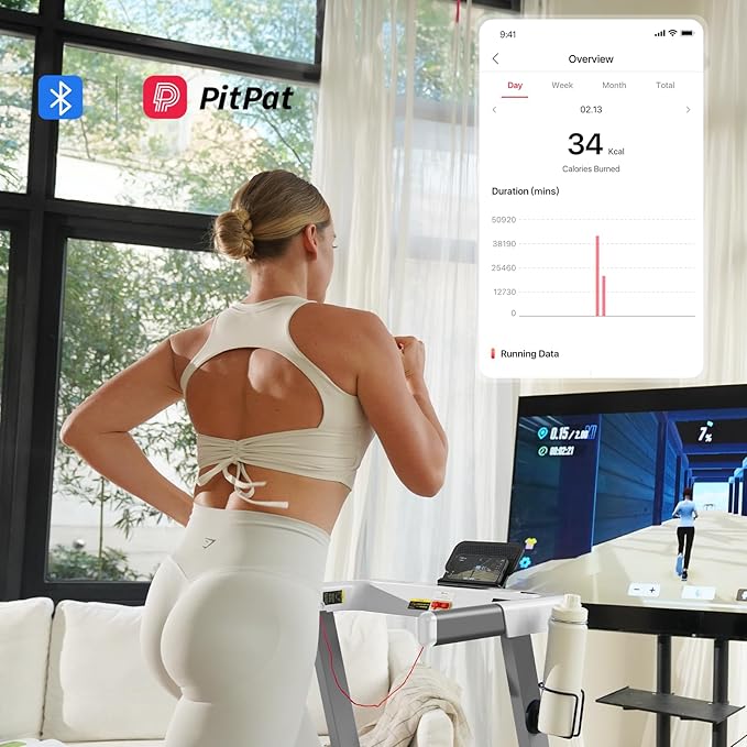 - PitPat APP Control:Enjoy your own sports! We have built a global intelligent sports community platform ─ PitPat, which provides a wealth of course content, and can record fitness data in the APP to achieve personalized exercise. In addition, through the social function of the APP, you can also participate in various online activities, such as online marathon, running relay, etc., to broaden your social circle. This feature-rich treadmill has completely changed fitness habits