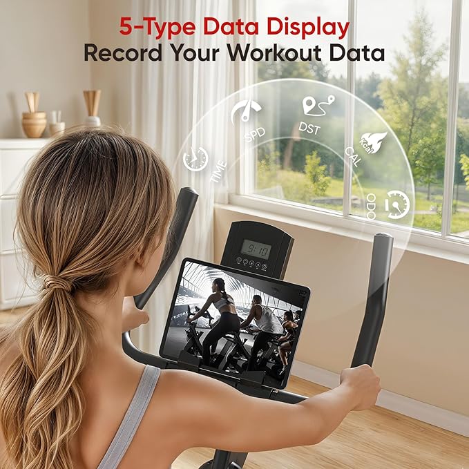 - 【Customized Your Workout Plan】The monitor can capture your time, spd, dst, cal, and odo. The unlimited tension adjusting levels allow for various uses, from a quick change of pace to full-scale cross-training, from warming up to cooling down before and after a workout