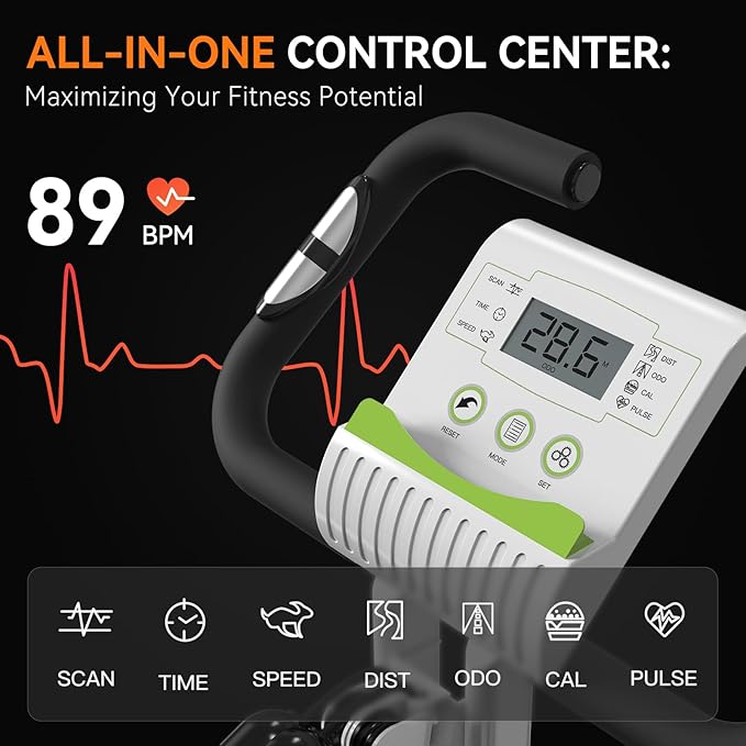 - SAVE SPACE & MOVE EASILY: The portable bike is easily adjustable, allowing for quick folding and upright. Its design enables easy storage in a small area, making it an ideal choice for small apartments or offices. The foldable bike comes with rollers on the front feet, facilitating effortless movement. Whether you're aiming to save space or seeking a portable exercise option, this workout bike for home gym is the ideal solution.