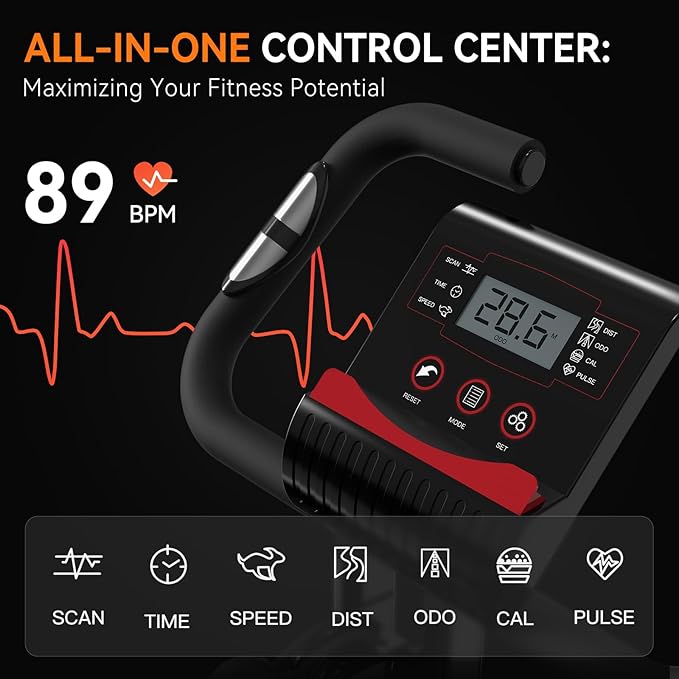 - SAVE SPACE & MOVE EASILY: The portable bike is easily adjustable, allowing for quick folding and upright. Its design enables easy storage in a small area, making it an ideal choice for small apartments or offices. The foldable bike comes with rollers on the front feet, facilitating effortless movement. Whether you're aiming to save space or seeking a portable exercise option, this workout bike for home gym is the ideal solution.