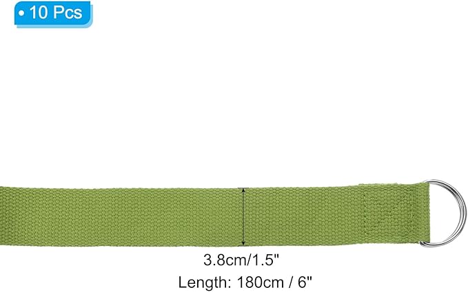 - Color: Dark Green; Material: Cotton; Length: 180cm / 6 Feet; Width: 3.8cm / 1.5 Inch; Packing List: 10Pcs x Yoga Bands