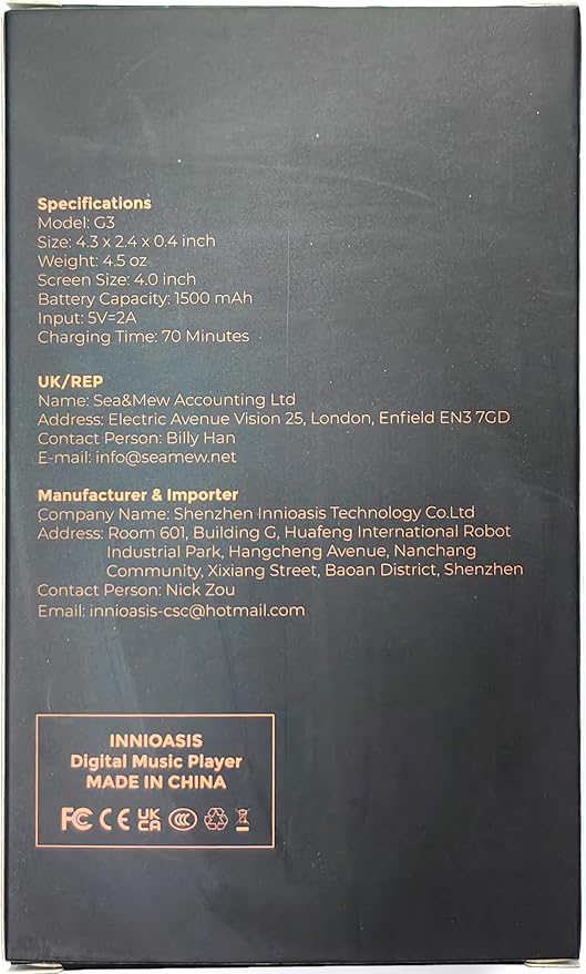 - Included Components : 128GB SD card x1, Mp3 player x 1, USB-C cable x 1, User manual x 1, Wired headphones x 1