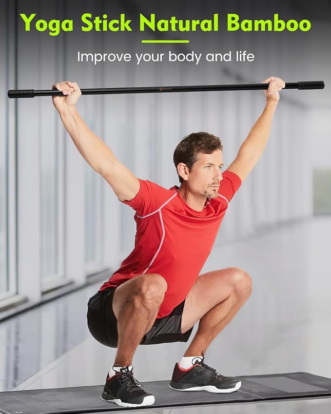 • Stick Length: The yoga bar measures 58.05 inches (148 cm) long, making it suitable for most men and women to practice yoga. The exercise dowel is made of natural bamboo and wrapped in rubber at both ends