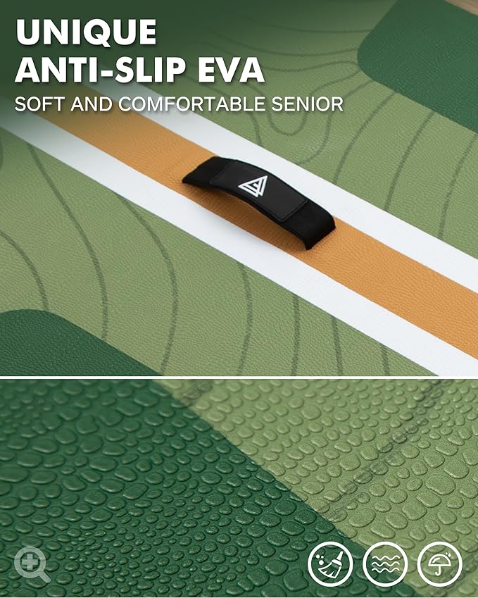 - 【Outdoor Partner Easy-to-Carry】 Inflatable surfboard set comes with a doulbe action hand pump that is easy to inflate or deflate in minutes, can be carried anywhere for all-around use. Suitable for various water environments such as sea, lakes, rivers. It's a perfect companion for yoga, surfing, snorkeling, fishing, traveling, touring etc. Waterproof phone bag, kayak seat,5L waterproof dry storage bag, oxford large 100L carry bag,shoulder strap, wrench are all included.