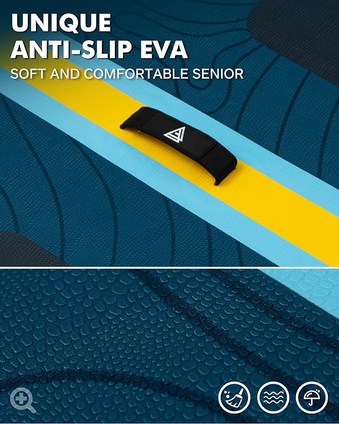 - 【Outdoor Partner Easy-to-Carry】 Inflatable surfboard set comes with a doulbe action hand pump that is easy to inflate or deflate in minutes, can be carried anywhere for all-around use. Suitable for various water environments such as sea, lakes, rivers. It's a perfect companion for yoga, surfing, snorkeling, fishing, traveling, touring etc. Waterproof phone bag, kayak seat,5L waterproof dry storage bag, oxford large 100L carry bag,shoulder strap, wrench are all included.