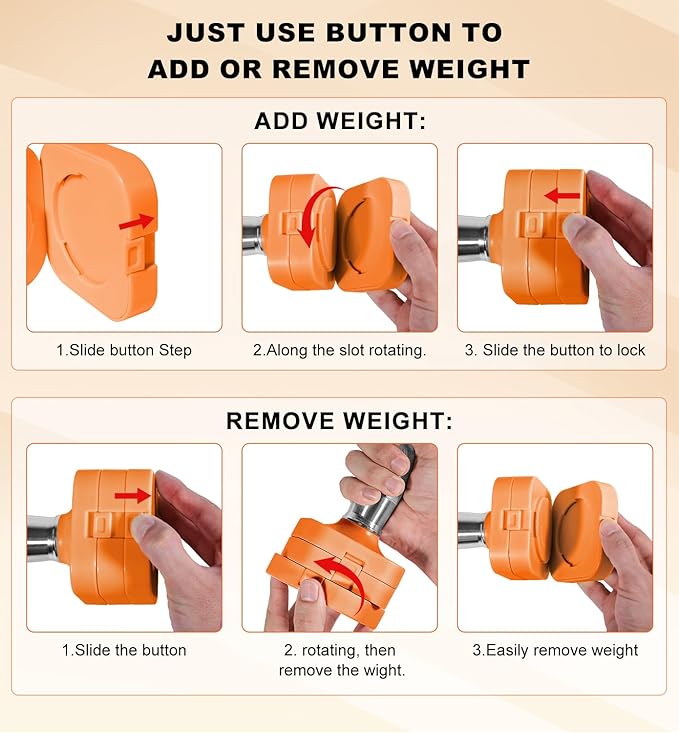 - The mechanism to connect and disconnect the additional weighted pieces are simple to use and twist into place, can be quickly to adjust for more or less weight.