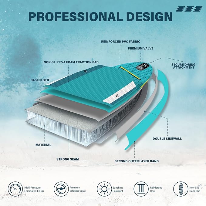 - Exceptional Durability:Our stand up paddle boards are made of high quality PVC material for a durable product. The paddle board measures 11'×34"×6", can hold up to 440 pounds, has a wide design with a non-slip surface for superior stability and balance on the water, making it easy for paddlers of all skill levels to maintain control.