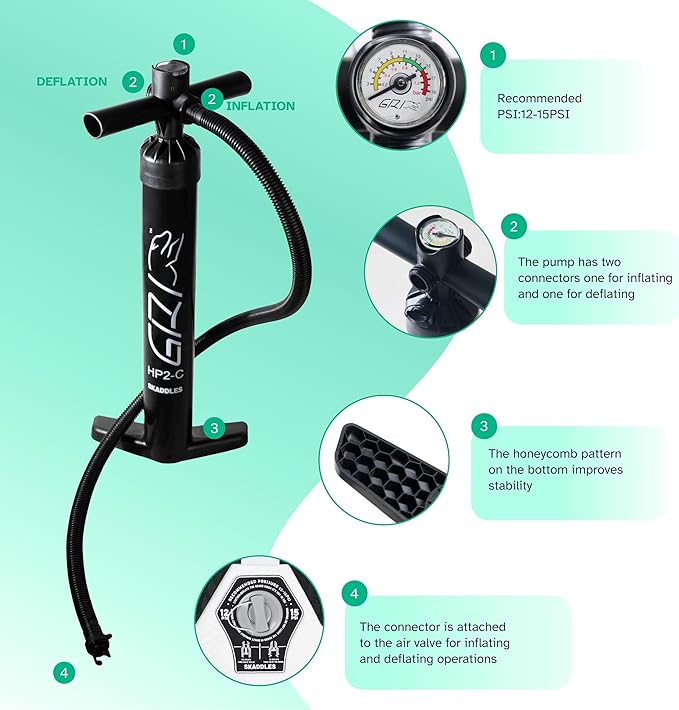 - 【All-in-One SUP Accessories Kit】 Each SKADDLES paddle board comes with a high-efficiency manual air pump, adjustable paddle, ankle safety leash, waterproof phone pouch, repair kit, and removable fins — everything you need for easy setup and worry-free paddling adventures.