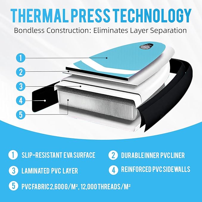 - 【Dual-Reinforced PVC & Barefoot Confidence】Crafted with 2mm-thick lightweight PVC, this inflatable board balances effortless portability with layered puncture protection. The textured EVA deck prevents slips during ocean yoga/fishing.