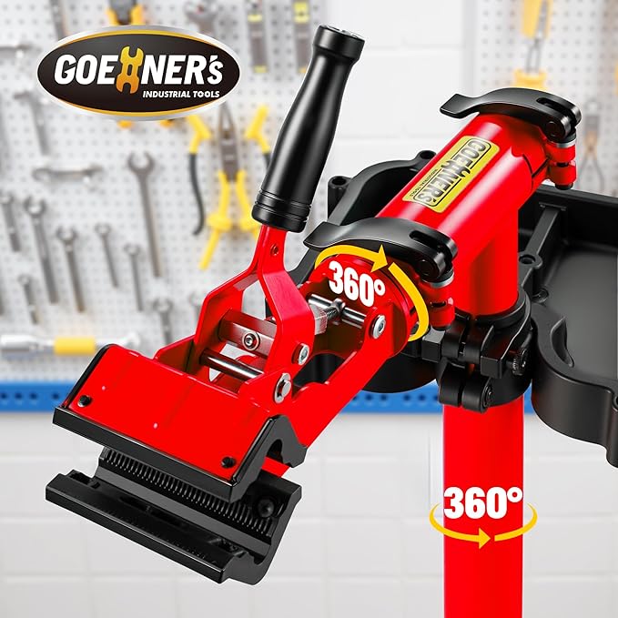 - 【Upgraded 360° Rotating Clamp】: Adjust the clamp opening size (1"-2.4") by rotating the hexagonal knob to securely hold bike tubes or seatposts of various diameters (1"-3"), and 360° rotate clamp for easy access to any angle during maintenance to make your repair work more efficient. The clamp surface is covered with rubber to ensure safe and scratch-free grip on your bicycle.