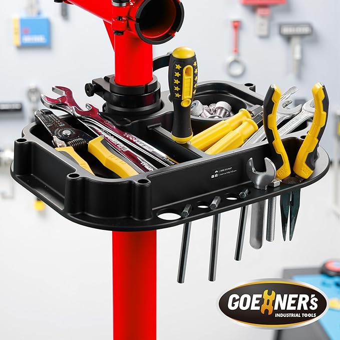 - 【Multi-functional Tool Tray】: Heavy duty bicycle repair stand is equipped with a quick-detach tool tray to safely store bike parts, screws or nuts, screwdrivers, keeping your maintenance tools organized and within reach, making your repair work more efficient.