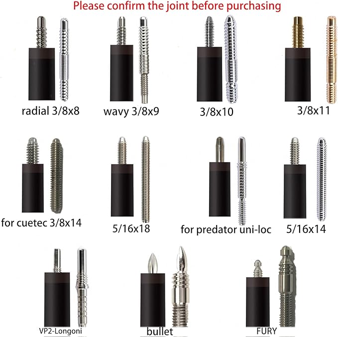 • [10.5mm/11.5mm/12.5mm/13mm Tip Size]11.8mm12.4mm is the acceleration taper, 12mm13mm is the professional taper, 10.5mm11.5mm is the equal taper 13mm is hitting cue shaft , hitting is used to hit a ball in billiard.No punch cue shaft