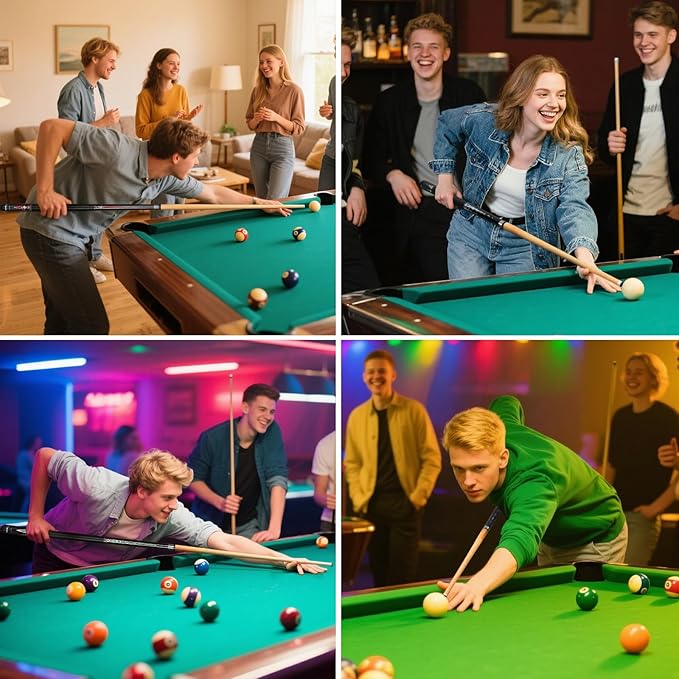 - Comfortable Pool Sticks: The leather grip is non-slip and sweat-wicking, reducing deflection, enhancing accuracy, and providing a comfortable feel for long-term use