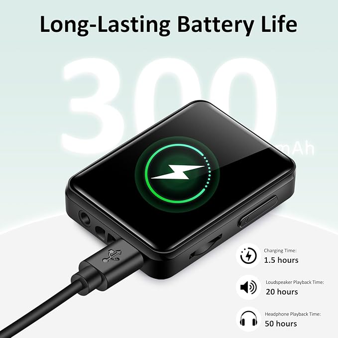 - 【Long-lasting battery life】 Built-in large-capacity battery, it can be used for a long time on a single charge, only 1.5 hours to fully charge, 20 hours with headphones and 4 hours with speakers. Say goodbye to the worry of mobile phone power consumption and focus on enjoying pure music time