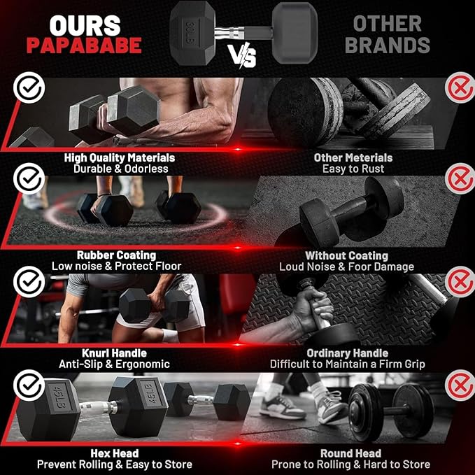 - Durable Construction & Floor Protection: The dumbbells are made of cast iron with chrome-plated handles and a rubber coating. The rubber coating helps resist rust, reduces noise during use, protects floors, and contributes to long-lasting durability.