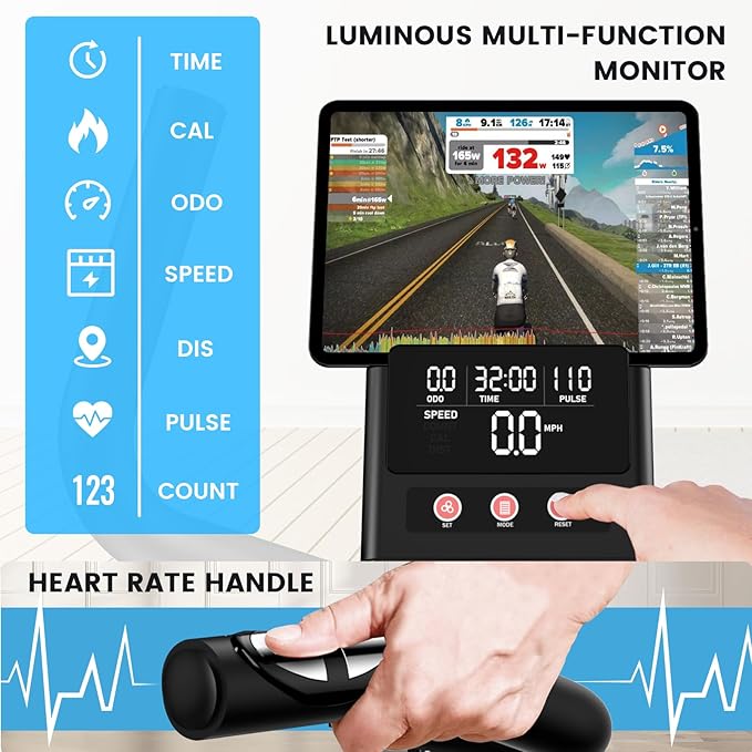 - 📊【Monitor Progress with Every Pedal】 Stay motivated with real-time tracking on the clear LCD monitor of this recumbent exercise bike. Monitor your speed, time, distance, calories, odometer, and heart rate with ease. Integrated pulse sensors on the handlebars provide accurate heart rate readings—giving you full control over your exercise bike sessions. Whether for weight loss, rehab, or daily movement, you'll stay on track every step of the way.