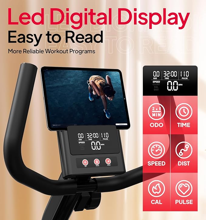 - 📊【Monitor Progress with Every Pedal】 Stay motivated with real-time tracking on the clear LCD monitor of this recumbent exercise bike. Monitor your speed, time, distance, calories, odometer, and heart rate with ease. Integrated pulse sensors on the handlebars provide accurate heart rate readings—giving you full control over your exercise bike sessions. Whether for weight loss, rehab, or daily movement, you'll stay on track every step of the way.