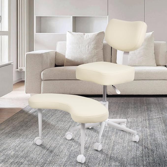 Meditation Chair Cross Legged ADHD Office Chair for Adults with Wheels Ergonomic Back Support and Leg Rest for Multi Position Criss Cross Sitting Kneeling and Yoga Height Adjustable, Leather Style